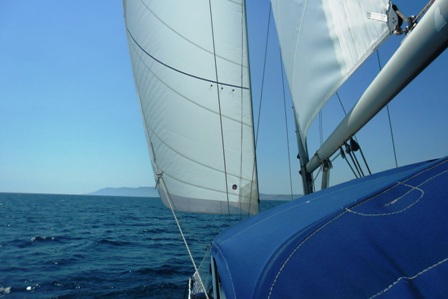 We chose today after observing weather patterns. Cruising was excellent, although the weather report said some heavy winds existed, we actually did not sail 2/3rd of the way due to low wind. It was a clear sky, beautiful water and almost too good to be true.