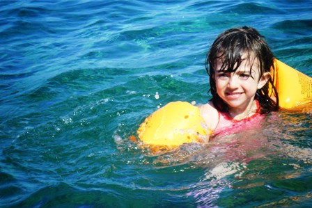 The water was perfect, we all went for a swim, both of our little children had their first free swimming with arm floaters on.