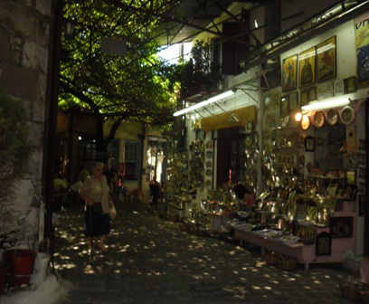 At 10 pm, or trip started conveniently from where Snow White was at Mytilene harbour to around Gena Gulf then to an ancient city of Agiassos in the hills. It seemed like the city was also dwelled by many Turks during the Ottoman times, so it had very similar characteristics. The older people, sitting by the street cafes, yelled and talked to us giving us directions in Greek, English, Turkish all at the same time and arguing about what they said. Then they yell over at the next group sitting at another shop or cafe to show us where to go... and all laughed, having fun with the tourists who got lost.