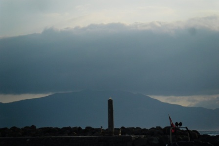 Magnificent view of approaching storm over Lesvos island pictured from Asos on Turkish coastline.